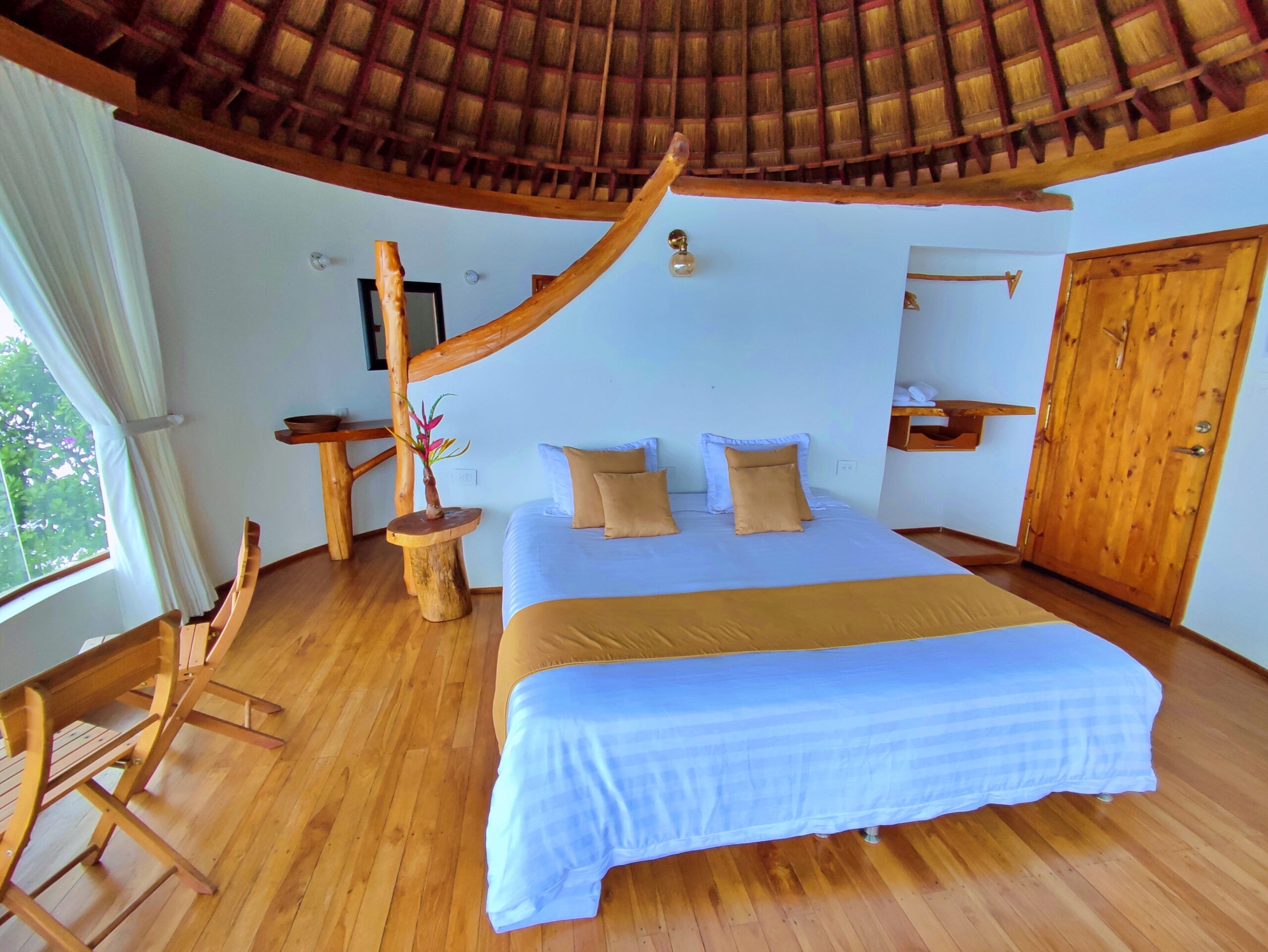 Our luxurious Koguihabs are inspired by the traditional architecture of the Kogui indigenous people, offering a unique and authentic experience for our guests. With large windows that overlook the stunning peaks of the Sierra Nevada de Santa Marta and the sparkling Caribbean Sea, you can wake up to magnificent sunrises and drift off to dreamy sunsets. These rooms are the perfect place to breathe in the fresh mountain air and soak in the panoramic views from the comfort of your own private sanctuary.