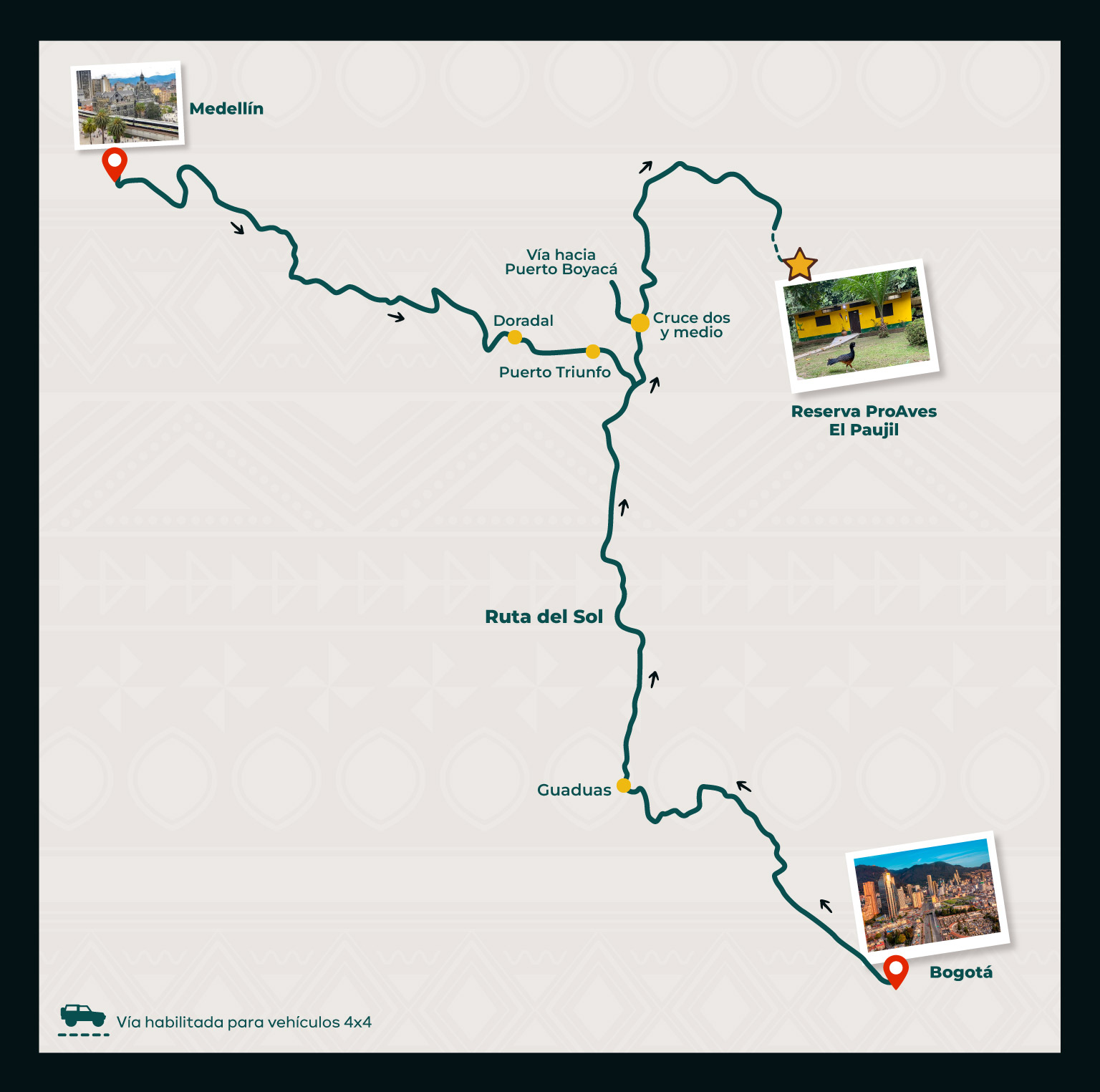 El Paujil ProAves Reserve is located in the village of Puerto Pinzón, municipality of Puerto Boyacá, department of Boyacá.