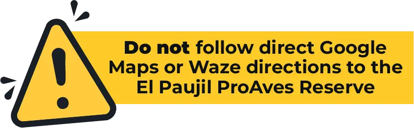 VERY IMPORTANT: Do not follow direct Google Maps directions to El Paujil Reserve.