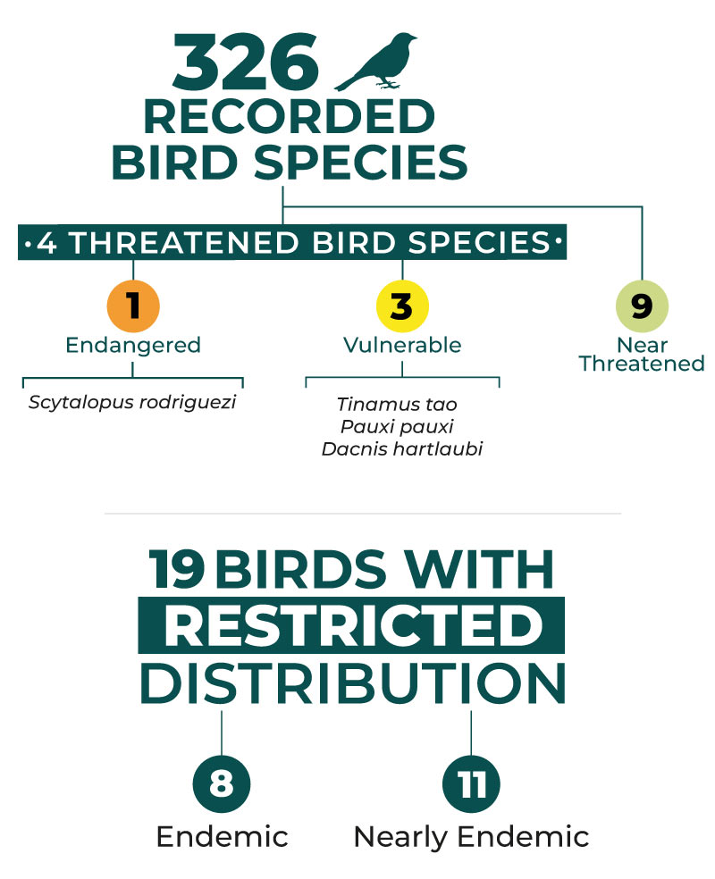 Among the most important birds of the Reserve are the Stone-crested Curassow (Pauxi pauxi), the Amazilia